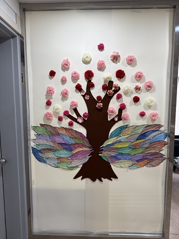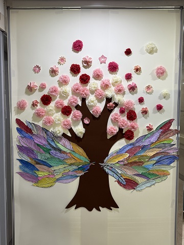 날개 하나하나에는 어르신들의 손길이 고스란히 담겨 있습니다. 색을 고르고, 모양을 만들고, 조심스럽게 붙여 나가던 그 순간들 속에는 단순한 활동 이상의 의미가 담겨 있었습니다. 누군가는 지나온 시간을 떠올리며 미소를 지으셨고, 또 누군가는 옆에 계신 분과 이야기를 나누며 잠시나마 외로움을 잊으셨습니다. 그 모든 시간이 모여 하나의 작품이 되었고, 이제는 병동을 밝히는 따뜻한 풍경으로 자리하게 되었습니다.