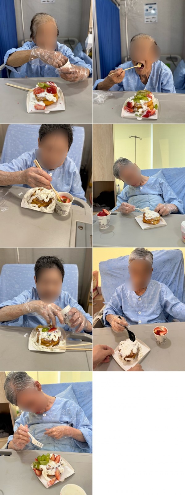 어르신들께서는 크림을 바르고 장식을 올리며 크리스마스의 따뜻한 분위기를 느끼셨고, 병실 안에서도 웃음과 정겨운 대화가 이어지는 뜻깊은 시간이 되었습니다.