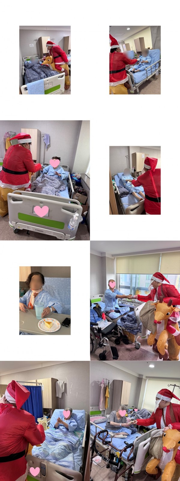 오전에는 사회복지사 선생님이 중환자실, 격리실, 일반병동을 직접 찾아가 모든 어르신 한 분 한 분께 정성껏 준비한 크리스마스 선물을 전달해 드렸습니다. 거동이 불편하시거나 병실을 벗어나기 어려운 어르신들께서도 선물을 받으시며 환하게 웃으시는 모습에, 병동 곳곳이 더욱 밝아졌습니다.