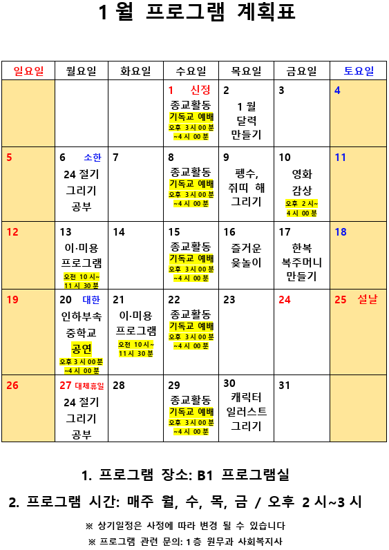 2020년 1월 사회복지 프로그램 계획표 페이지 정보 작성자 최고관리자 작성일20-01-06 11:06 조회9,466회 댓글0건 관련링크 이전글 다음글 본문 새해 복 많이 받으시길 바랍니다.^^ 목록