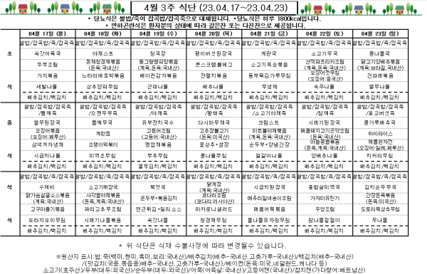 "금주의 식단 메뉴를 확인 할 수 있습니다."