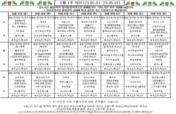 5월 1주 식단표