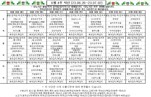 6월 4주 식단표