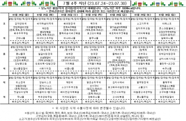 7월 4주 식단표