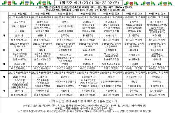 "금주의 식단 메뉴를 확인 할 수 있습니다."
