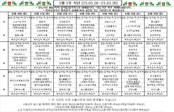 "금주의 식단 메뉴를 확인 할 수 있습니다."