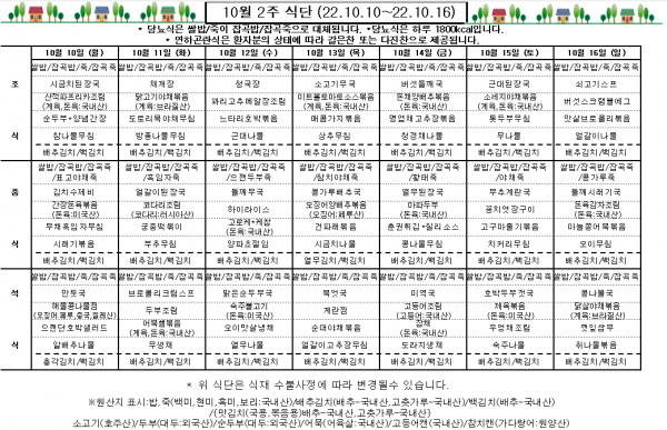 10월 2주 식단표
