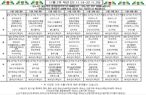 11월 2주 식단표