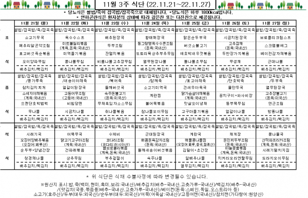 "금주의 식단 메뉴를 확인 할 수 있습니다."