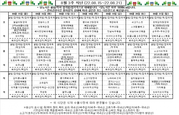 "금주의 식단 메뉴를 확인 할 수 있습니다."