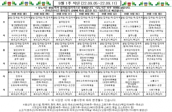 "금주의 식단 메뉴를 확인 할 수 있습니다."