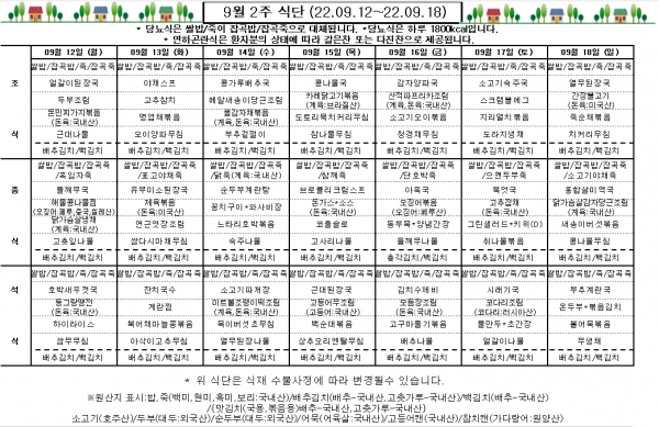 "금주의 식단 메뉴를 확인 할 수 있습니다."