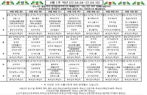 "금주의 식단 메뉴를 확인 할 수 있습니다."