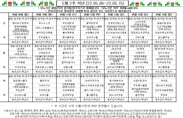 "금주의 식단 메뉴를 확인 할 수 있습니다."