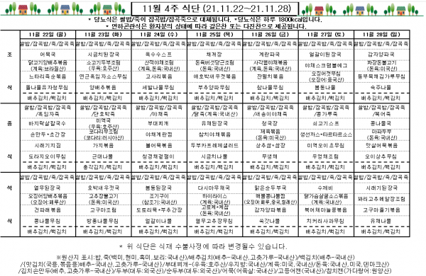 11월 4주 식단표