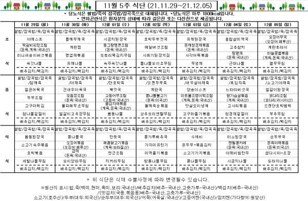 "금주의 식단 메뉴를 확인 할 수 있습니다."