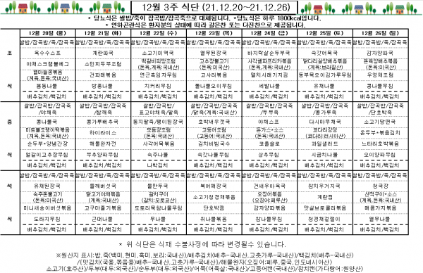 "금주의 식단 메뉴를 확인 할 수 있습니다."