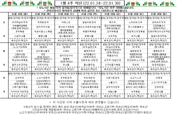 "금주의 식단 메뉴를 확인 할 수 있습니다."