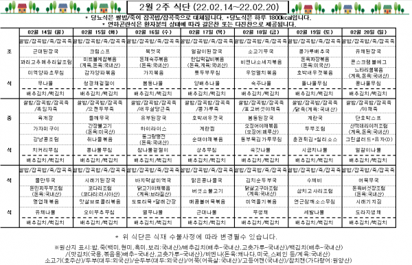 "금주의 식단 메뉴를 확인 할 수 있습니다."