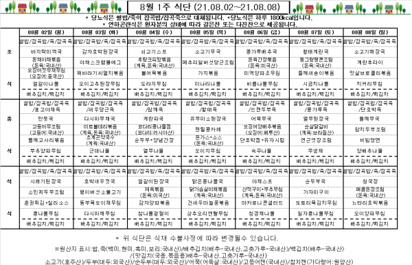 "금주의 식단 메뉴를 확인 할 수 있습니다."