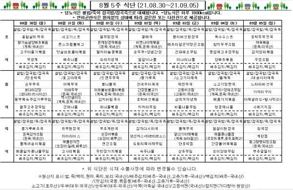 8월 5주 식단표