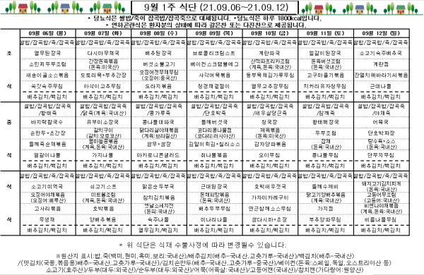 9월 1주 식단표