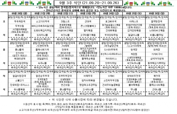 9월 3주 식단표