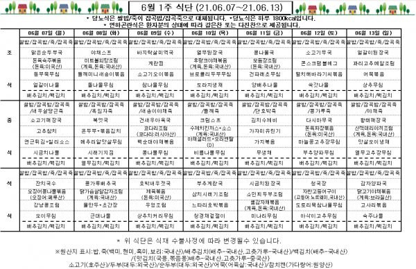 "금주의 식단 메뉴를 확인 할 수 있습니다."