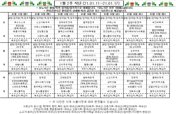 1월 2주 식단표