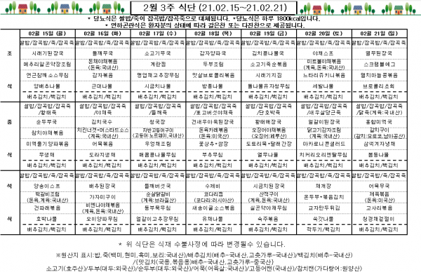 "금주의 식단 메뉴를 확인 할 수 있습니다."