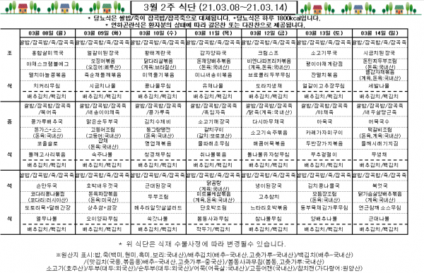 3월 2주 식단표