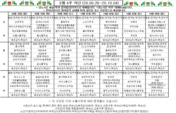 "금주의 식단 메뉴를 확인 할 수 있습니다."
