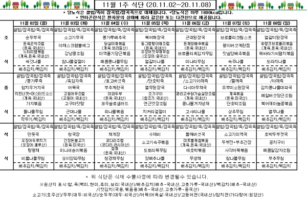 "금주의 식단 메뉴를 확인 할 수 있습니다."