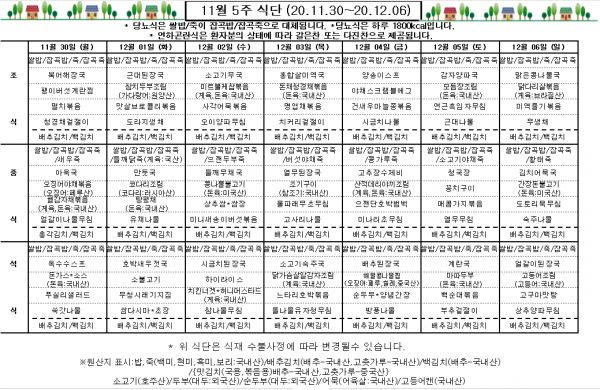 "금주의 식단 메뉴를 확인 할 수 있습니다."