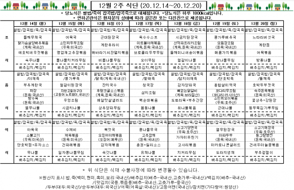 12월 2주 식단표