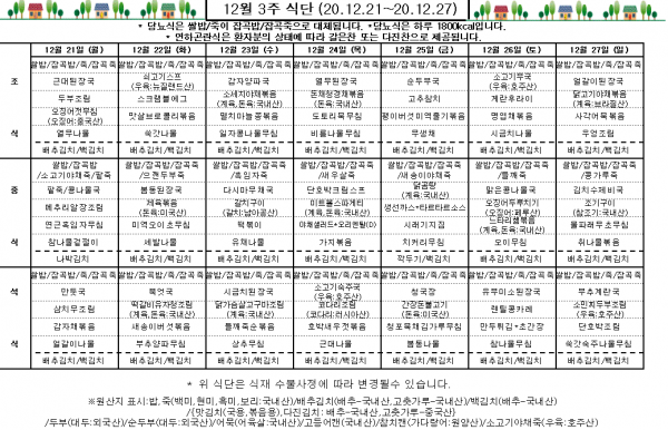 12월 3주 식단표