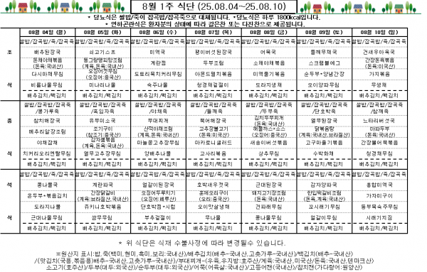 8월 1주 식단표