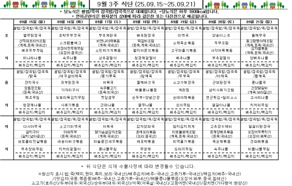 "금주의 식단 메뉴를 확인 할 수 있습니다."