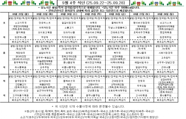 9월 4주 식단표