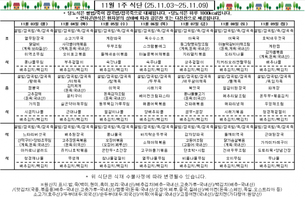 11월 1주 식단표
