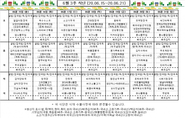 6월 3주 식단표