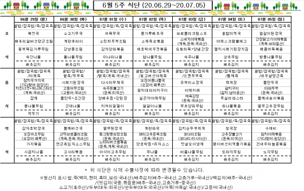 "금주의 식단 메뉴를 확인 할 수 있습니다."