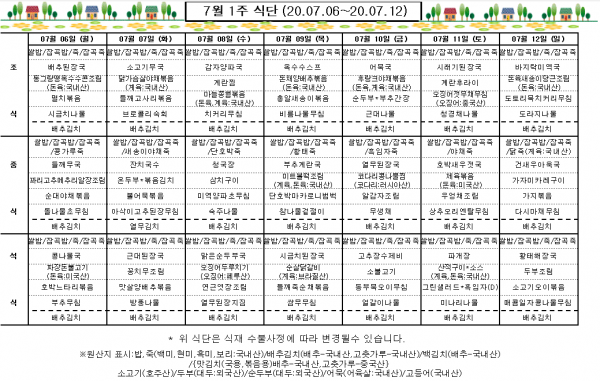 "금주의 식단 메뉴를 확인 할 수 있습니다."