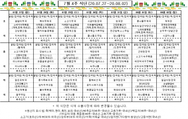 "금주의 식단 메뉴를 확인 할 수 있습니다."