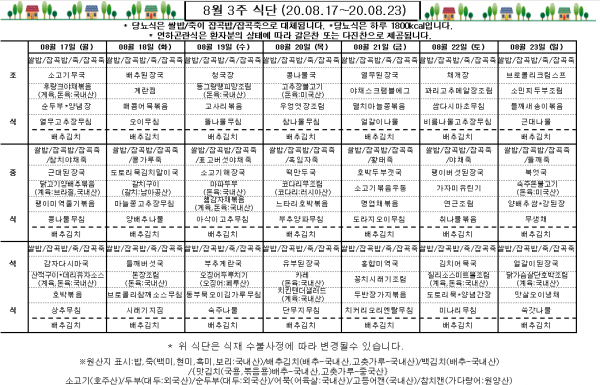 "금주의 식단 메뉴를 확인 할 수 있습니다."