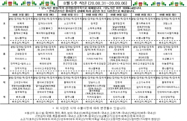 "금주의 식단 메뉴를 확인 할 수 있습니다."
