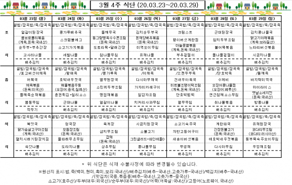 3월 4주 식단표