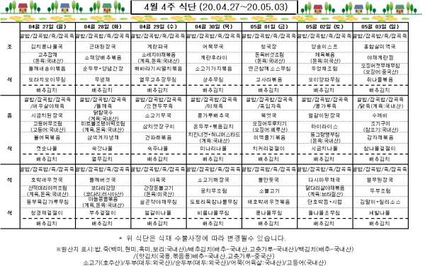 4월 4주 식단표