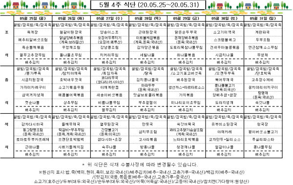 "금주의 식단 메뉴를 확인 할 수 있습니다."