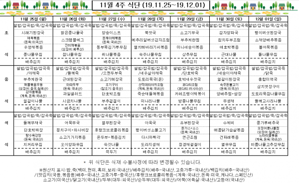11월 4주 식단표